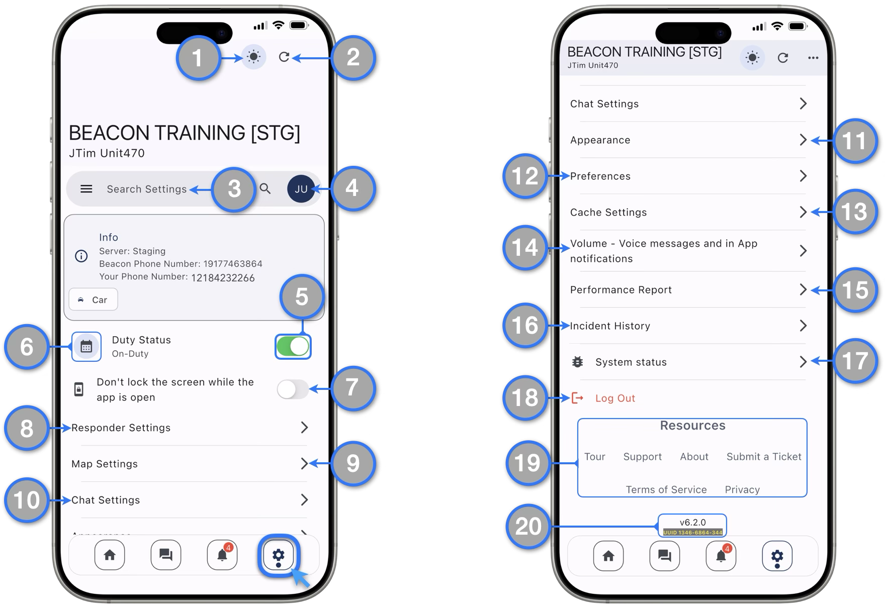 8. Responder Settings — All settings related to the responder account are now grouped here: Responder Type, Transport Mode, GPS Tracking, and more