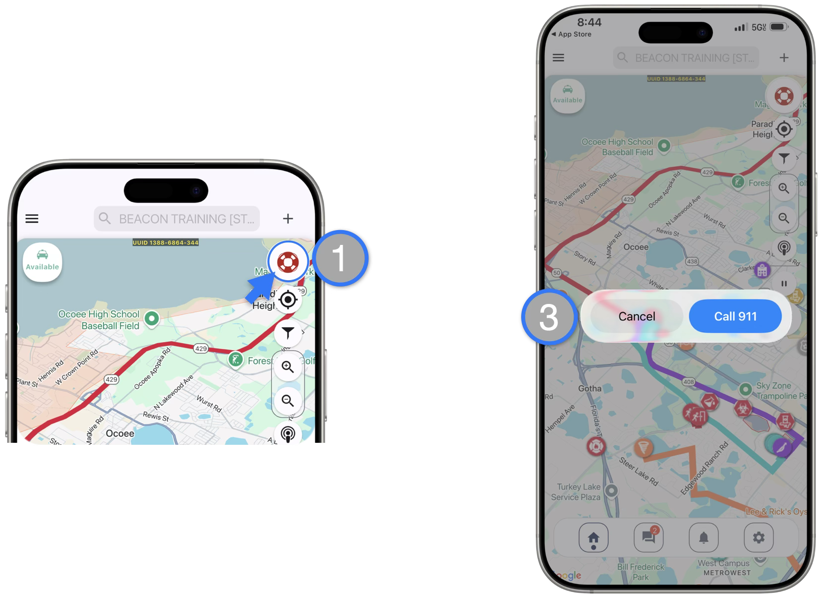 3. If “CONFIRM” is clicked (or if the Responder doesn’t acknowledge the prompt within 3 seconds) the SOS Alerts are sent to Beacon Users
